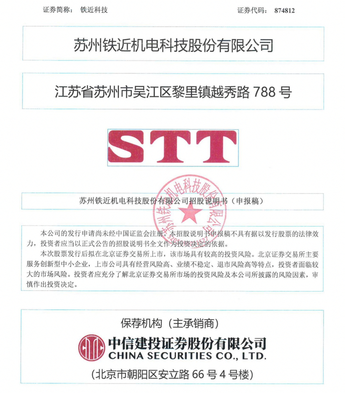 瑞财经 吴文婷12月25日,苏州铁近机电科技股份有限公司(以下简称“铁近科技”)北交所IPO获受理。
