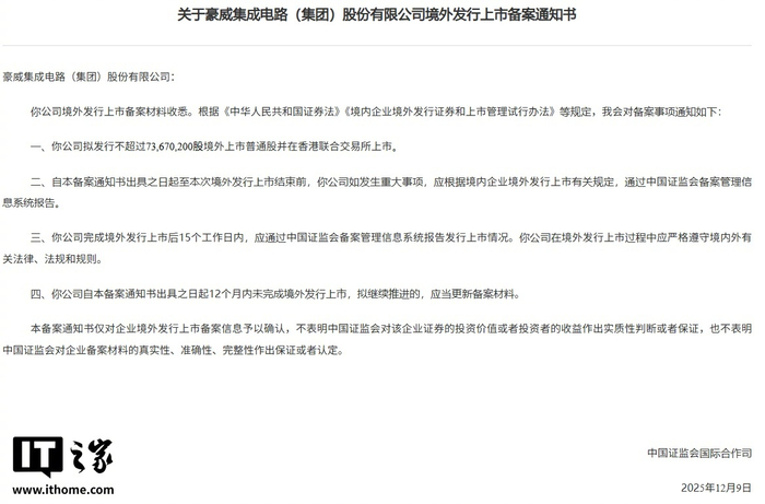 豪威集团等五家科技公司港股IPO获中国证监会备案