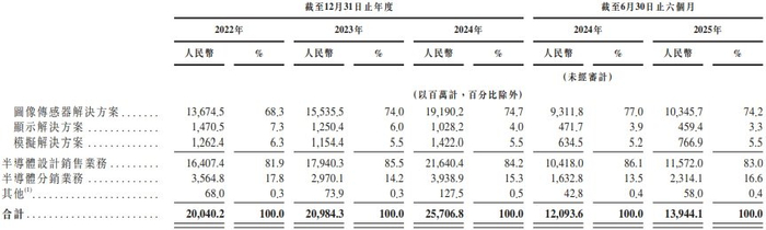 截至2022年、2023年及2024年12月31日止年度以及截至2024年及2025年6月30日止六个月,豪威集团的收入分别为人民币20,040.2百万元、人民币20,984.3百万元、人民币25,706.8百万元、人民币12,093.6百万元及人民币13,944.1百万元。
