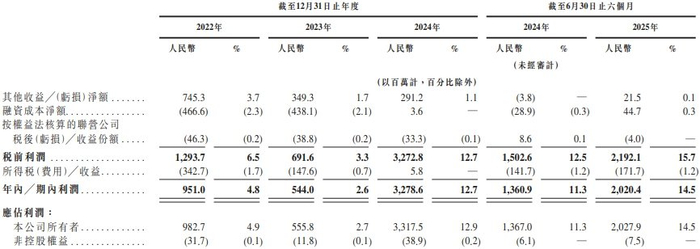 截至2022年、2023年及2024年12月31日止年度以及截至2024年及2025年6月30日止六个月,豪威集团年内/期内利润分别为人民币951.0百万元、人民币544.0百万元、人民币3,278.6百万元、人民币1,360.9百万元及人民币2,020.4百万元。