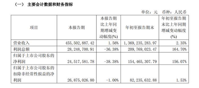 然而,单看第三季度表现,南都物业营业收入4.56亿元,同比增长1.56%;归属于上市公司股东的净利润2451.76万元,同比减少38.38%。