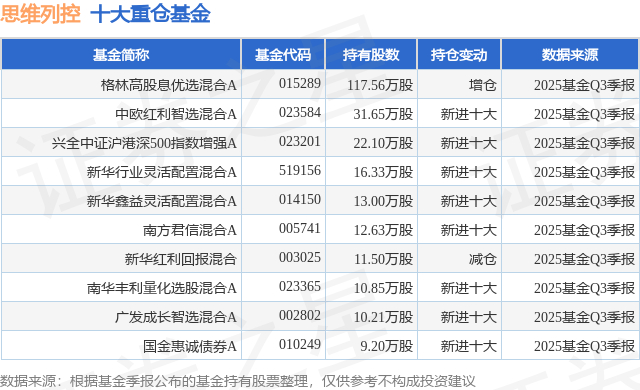 根据2025基金Q3季报公募基金重仓股数据,重仓该股的公募基金共22家,其中持有数量最多的公募基金为格林基金的格林高股息优选混合A。格林高股息优选混合A目前规模为1.36亿元,最新净值1.7519(12月1日),较上一交易日上涨0.73%,近一年上涨70.27%。该公募基金现任基金经理为刘赞。刘赞在任的基金产品包括:格林碳中和主题混合A,管理时间为2023年1月19日至今,期间收益率为58.65%;格林鑫利六个月持有期混合A,管理时间为2023年3月20日至今,期间收益率为23.42%;格林港股通臻选混合A,管理时间为2024年4月22日至今,期间收益率为48.79%。