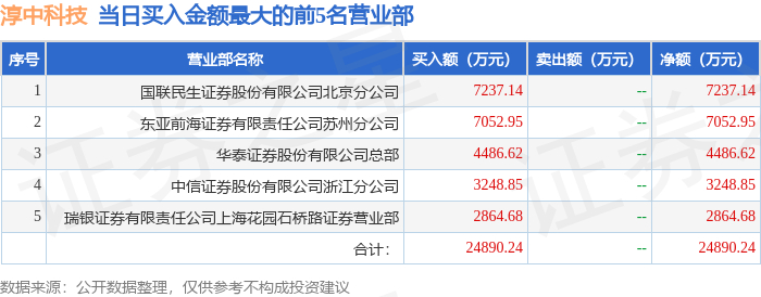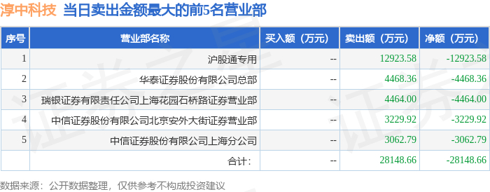 11月10日淳中科技(603516)龙虎榜数据:北向资金净卖出1.29亿元
