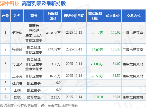 淳中科技近半年内的董监高及核心技术人员增减持详情如下: