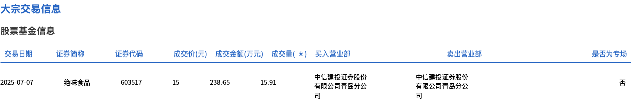 绝味食品今日大宗交易折价成交15.91万股,成交额238.65万元