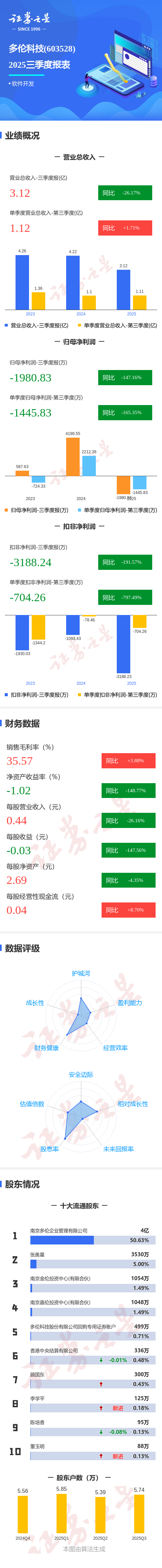 图解多伦科技三季报:第三季度单季净利润同比下降165.35%