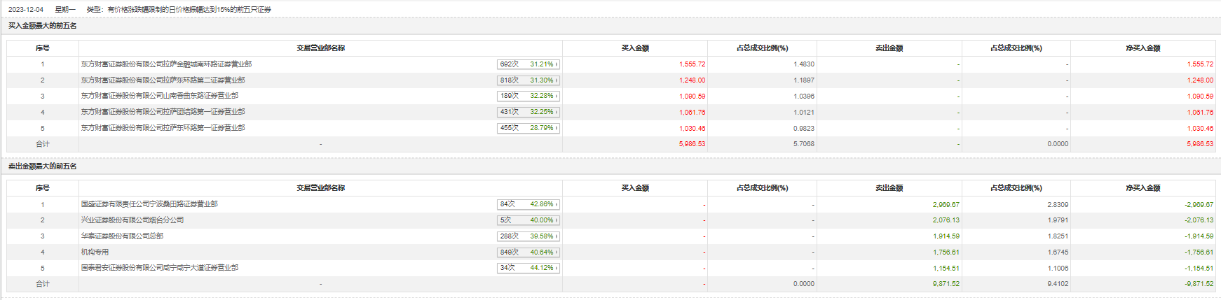 具体来看,机构合计净卖出1756.61万元。此外,知名游资现身龙虎榜,东方财富证券拉萨金融城南环路证券营业部、东方财富证券拉萨东环路第二证券营业部分别买入1555.72万元、1248.00万元;宁波桑田路(国盛证券宁波桑田路证券营业部)、兴业证券烟台分公司分别卖出2969.67万元、2076.13万元。