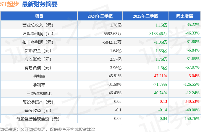 ST起步(603557)2025年三季报简析:净利润同比下降46.33%,短期债务压力上升
