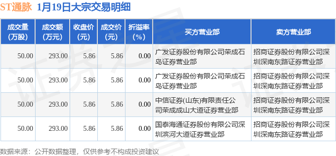 证券之星消息,1月19日ST通脉发生大宗交易,交易数据如下: