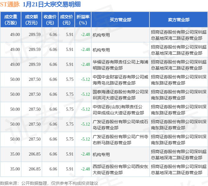 1月21日ST通脉现10笔大宗交易 机构净买入786.03万元
