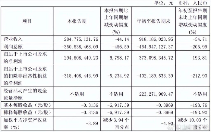 第三季度报告显示,前三季度,珍宝岛药业营收同比下滑54.71%至9.18亿元,亏损扩大至3.73亿元。其中,第三季度亏损2.95亿元。