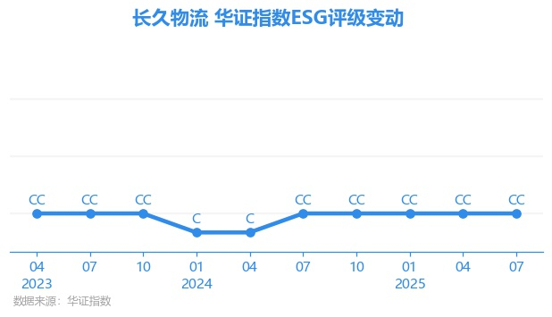 日前,华证指数公布了新一期(2025年7月31日)的ESG评级结果,长久物流(603569.SH)获得CC评级(华证指数评级为C起至AAA九档,C为最低档,AAA为其最高一级评级/AA为其第二档),上一期(2025年4月30日)ESG评级为CC。本期ESG评级在22家地面运输行业A股上市公司中排名第16(上一期排名第18)。
