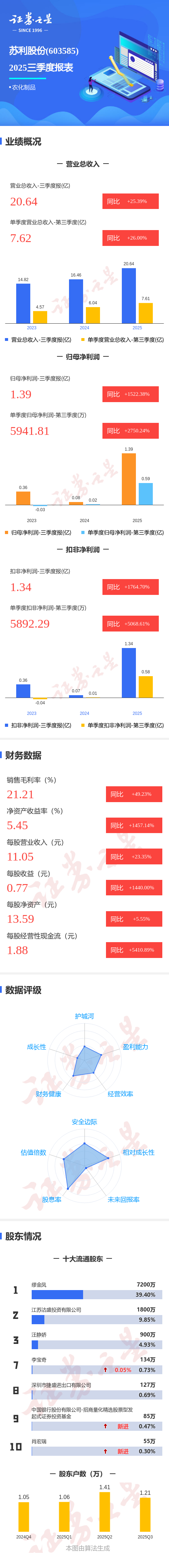 图解苏利股份三季报:第三季度单季净利润同比增长2750.24%