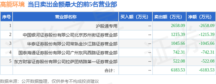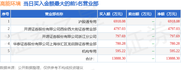 10月9日高能环境(603588)龙虎榜数据:机构净买入595.22万元,北向资金净买入4259.99万元