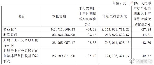 近期,二线白酒龙头口子窖发布了2025年前三季度业绩报告,财报显示,今年前三季度口子窖实现营收31.74亿元,同比下滑27.24%;实现净利润7.42亿元,同比下滑43.39%,今年前三季度业绩“双降”。