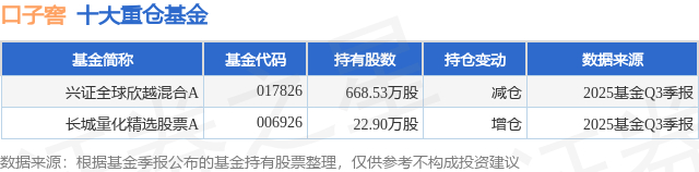 根据2025基金Q3季报公募基金重仓股数据,重仓该股的公募基金共2家,其中持有数量最多的公募基金为兴证全球基金的兴证全球欣越混合A。兴证全球欣越混合A目前规模为18.69亿元,最新净值1.2158(11月20日),较上一交易日下跌0.21%,近一年上涨11.82%。该公募基金现任基金经理为童兰。