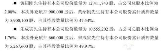此外,口子窖副总经理兼营销公司董事长黄绍刚于2025年9月质押公司500.01万股股份后,再次补充质押90万股股份,共计占其持股总数的47.54%。而副总经理朱成寅2025年8月质押460.76万股股份后,此次补充质押66万股,合计占其持股总数的49.91%。