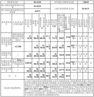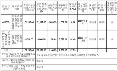 关于“KC1036”和“年产500KG抗肿瘤原料药生产基地建设项目”具体详见附表2“变更募集资金投资项目情况表”。
