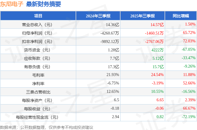 东尼电子(603595)2025年三季报简析:营收上升亏损收窄,短期债务压力上升