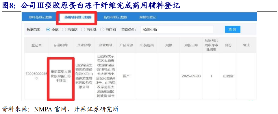 锦波生物Ⅲ型胶原蛋白冻干纤维完成药用辅料登记