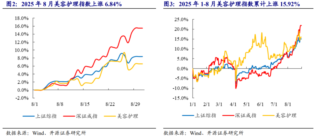 医美(选取14家上市公司):8月个股涨幅靠前为美丽田园医疗健康(+32.4%)、科笛(+31.7%)、医思健康(+22.7%);化妆品(选取22家上市公司):8月个股涨幅靠前为嘉亨家化(+55.4%)、水羊股份(+36.3%)、若羽臣(+29.0%)。