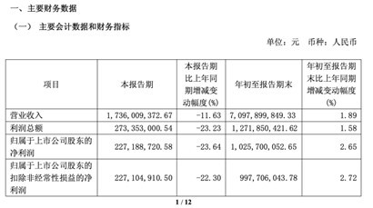 股价背后,财务数据显示,公司今年第三季度营收17.36亿元,同比下降11.63%,扣非净利润2.27亿元,同比下降22.30%。