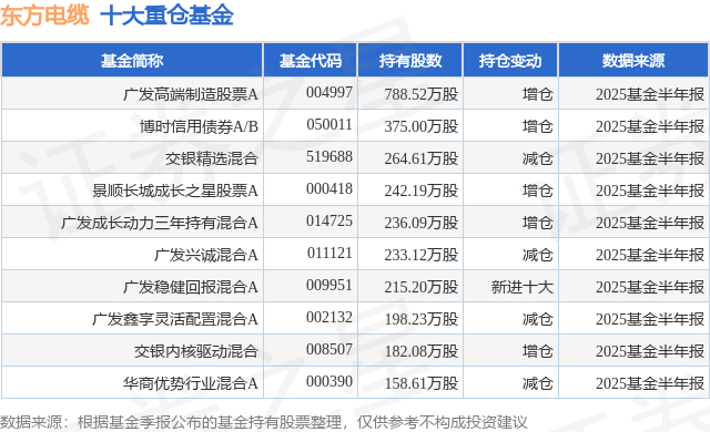 根据2025基金半年报公募基金重仓股数据,重仓该股的公募基金共141家,其中持有数量最多的公募基金为广发基金的广发高端制造股票A。广发高端制造股票A目前规模为44.64亿元,最新净值1.4674(9月29日),较上一交易日上涨2.29%,近一年上涨8.95%。该公募基金现任基金经理为郑澄然。郑澄然在任的基金产品包括:广发鑫享灵活配置混合A,管理时间为2020年5月20日至今,期间收益率为54.64%;广发兴诚混合A,管理时间为2021年1月6日至今,期间收益率为-48.27%;广发诚享混合A,管理时间为2021年2月8日至今,期间收益率为-48.26%。