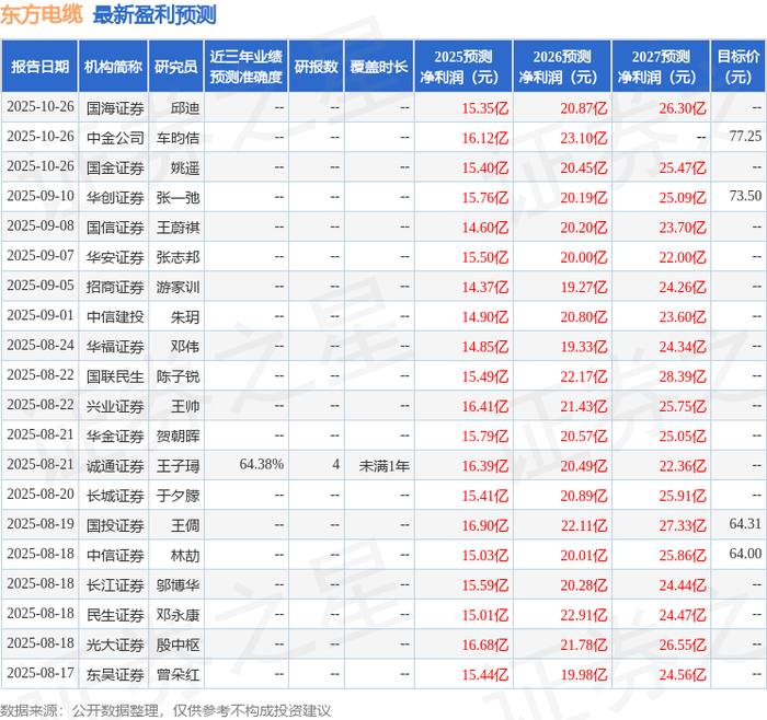 东吴证券股份有限公司曾朵红,郭亚男,胡隽颖近期对东方电缆进行研究并发布了研究报告《2025年三季报点评:广东项目进入密集交付期,存货规模进一步上量》,给予东方电缆买入评级。