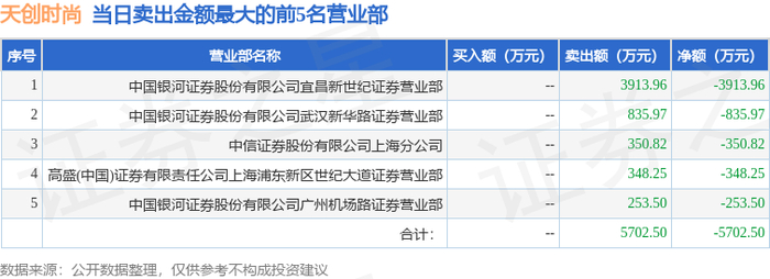 10月27日天创时尚(603608)龙虎榜数据:游资瑞鹤仙上榜
