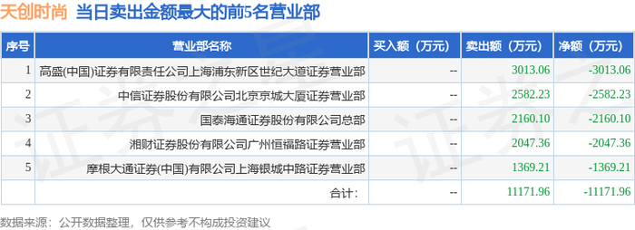 1月6日天创时尚(603608)龙虎榜数据
