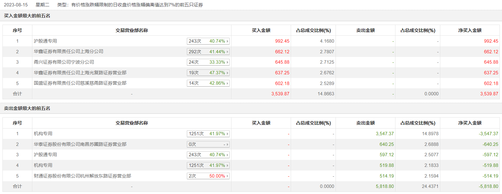具体来看,机构合计净卖出4067.24万元。此外,沪股通专用、华鑫证券上海分公司分别买入992.45万元、662.12万元;华泰证券南昌苏圃路证券营业部、沪股通专用分别卖出640.25万元、597.12万元。