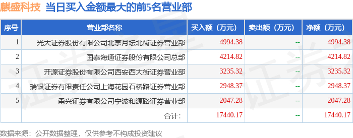 10月13日麒盛科技(603610)龙虎榜数据