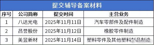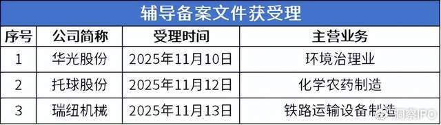 11月10日-11月16日,北交所有3家公司辅导备案文件获受理,进入辅导期。