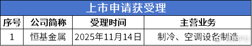 2025年11月14日,广东恒基金属股份有限公司(简称:恒基金属)上市申请获北交所受理。