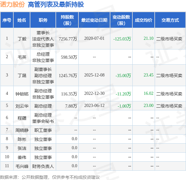诺力股份近半年内的董监高及核心技术人员增减持详情如下: