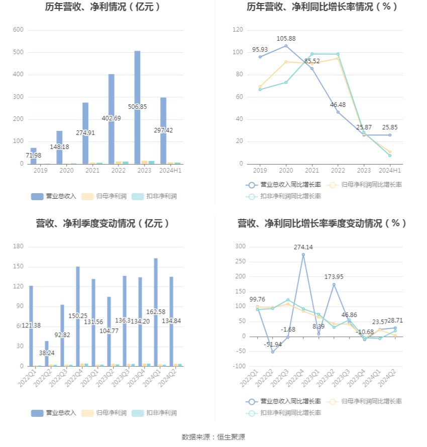 根据半年报,公司第二季度实现营业总收入134.84亿元,同比增长28.71%,环比下降17.06%;归母净利润4.0亿元,同比增长3.35%,环比增长27.90%;扣非净利润3.73亿元,同比增长19.07%,环比增长58.16%。