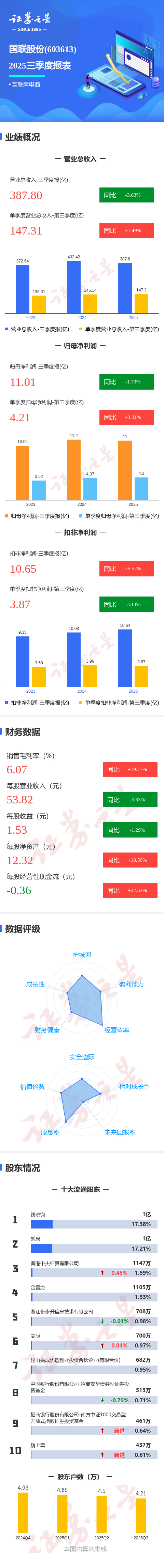 图解国联股份三季报:第三季度单季净利润同比增长3.31%