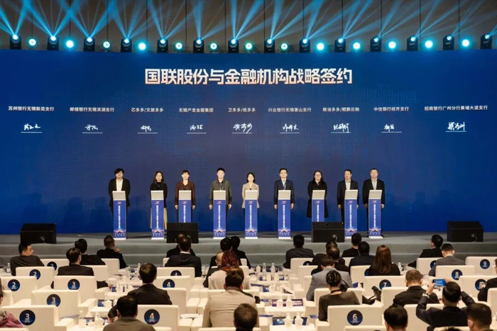 签约环节,无锡经开区与国联股份达成战略合作,与多多平台链主企业签约,一批数字经济产业链项目入驻数字经济产业园。国联股份与相关金融机构完成战略签约,开启多方协同发展的新篇章。