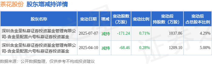 该股近半年内有股东持股变动,合计净减持239.7万股,股东增减持明细如下表: