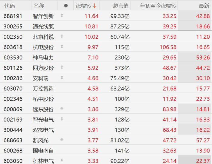 A股异动丨AI算力爆发催生需求,电网设备股集体强势,智洋创新涨超11%,杭电股份10CM涨停