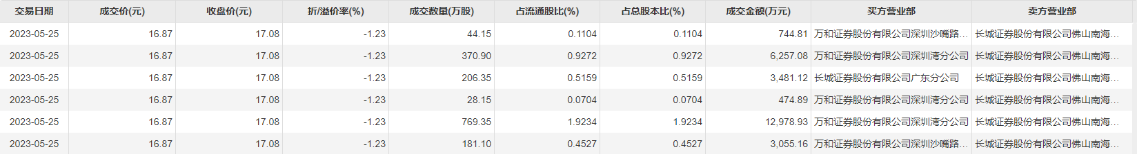 今日大宗交易成交1600万股,成交额2.7亿元,占当日总成交额的81.1%,成交价16.87元,较市场收盘价折价1.23%。