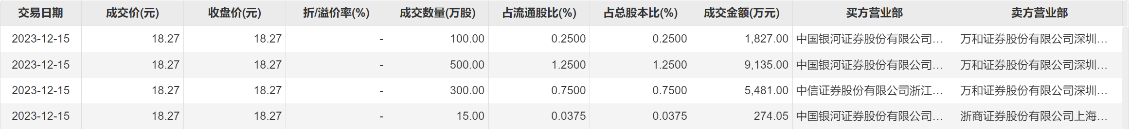 今日大宗交易成交915万股,成交额1.67亿元,占当日总成交额的72.93%,成交价18.27元,较市场收盘价持平。