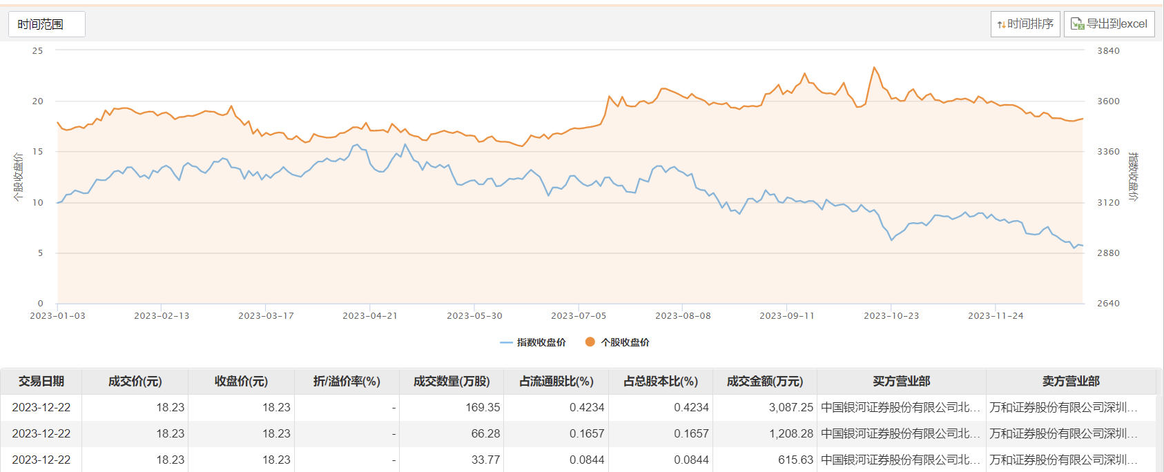 今日大宗交易成交269.4万股,成交额4911.16万元,占当日总成交额的43.5%,成交价18.23元,较市场收盘价持平。