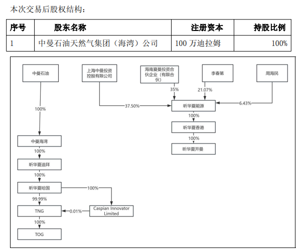 本次交易完成后,中曼石油将实现对昕华夏迪拜的100%控股,从而全资拥有位于哈萨克斯坦的坚戈区块油气田资产。