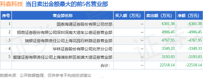 9月22日科森科技(603626)龙虎榜数据:游资章盟主上榜