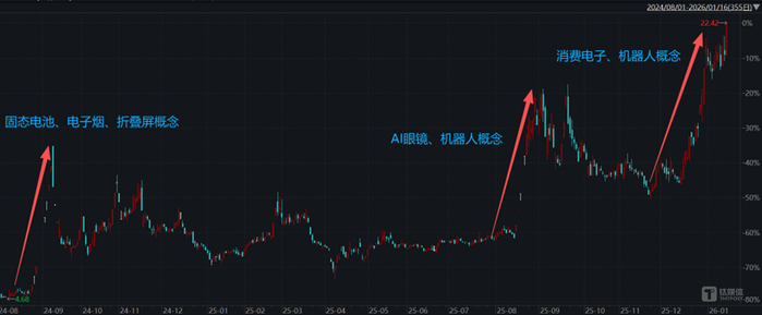 这是近年A股市场具有代表性的故事:一家基本面持续承压的传统制造企业,凭借与一系列前沿科技概念的“捆绑”——从固态电池、电子烟到折叠屏、AI眼镜乃至机器人——在二级市场上演了数轮令人瞠目的估值狂欢。财报则一次次揭示,其概念光环下订单萎缩、竞争力下滑、战略摇摆的残酷现实。