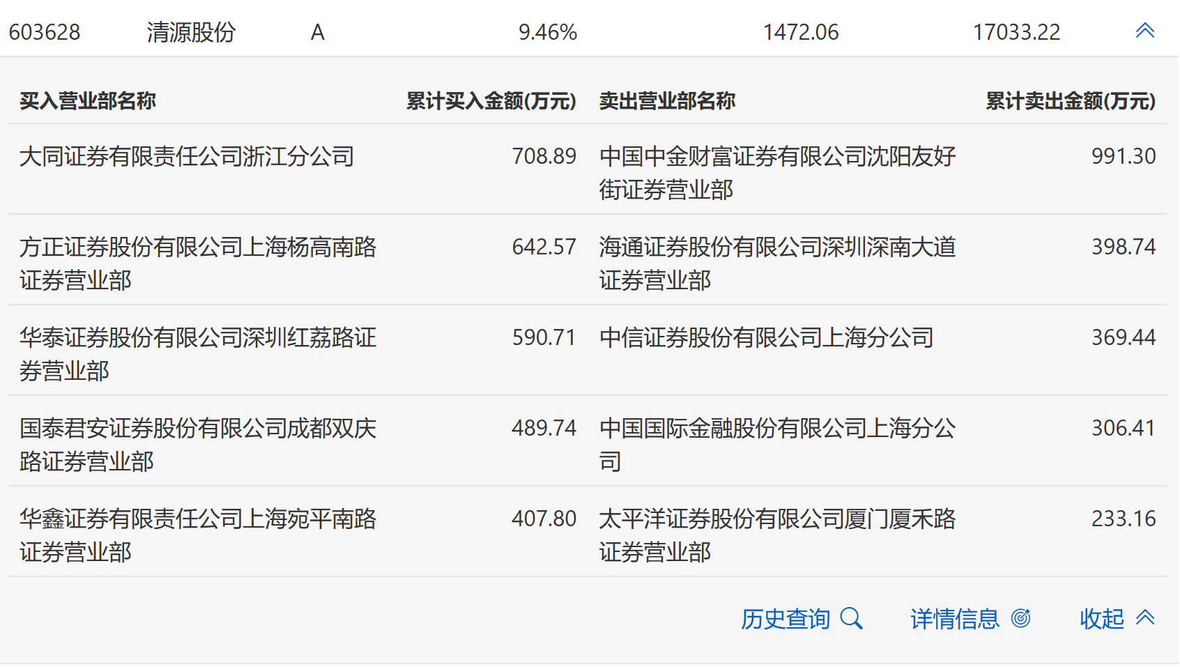 12月21日,清源股份今日涨停,龙虎榜数据显示,上榜营业部席位全天成交5138.77万元,占当日总成交金额比例为30.17%。其中,买入金额为2839.72万元,卖出金额为2299.05万元,合计净买入540.66万元。