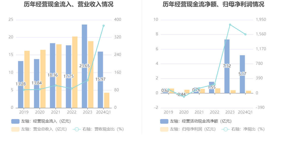 2024年第一季度,公司营业收入现金比为373.34%,净现比为1562.55%。