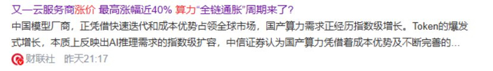 Token的爆发式增长,本质上反映出AI推理需求的指数级扩容,带来必然是算力需求激增。在这种情况下,涨价或将是不得不面对局面。
