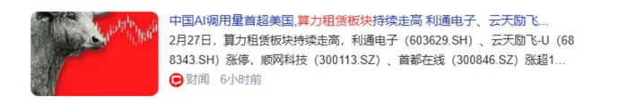 受此消息影响,算力租赁板块大涨,云天励飞等6家公司涨停。